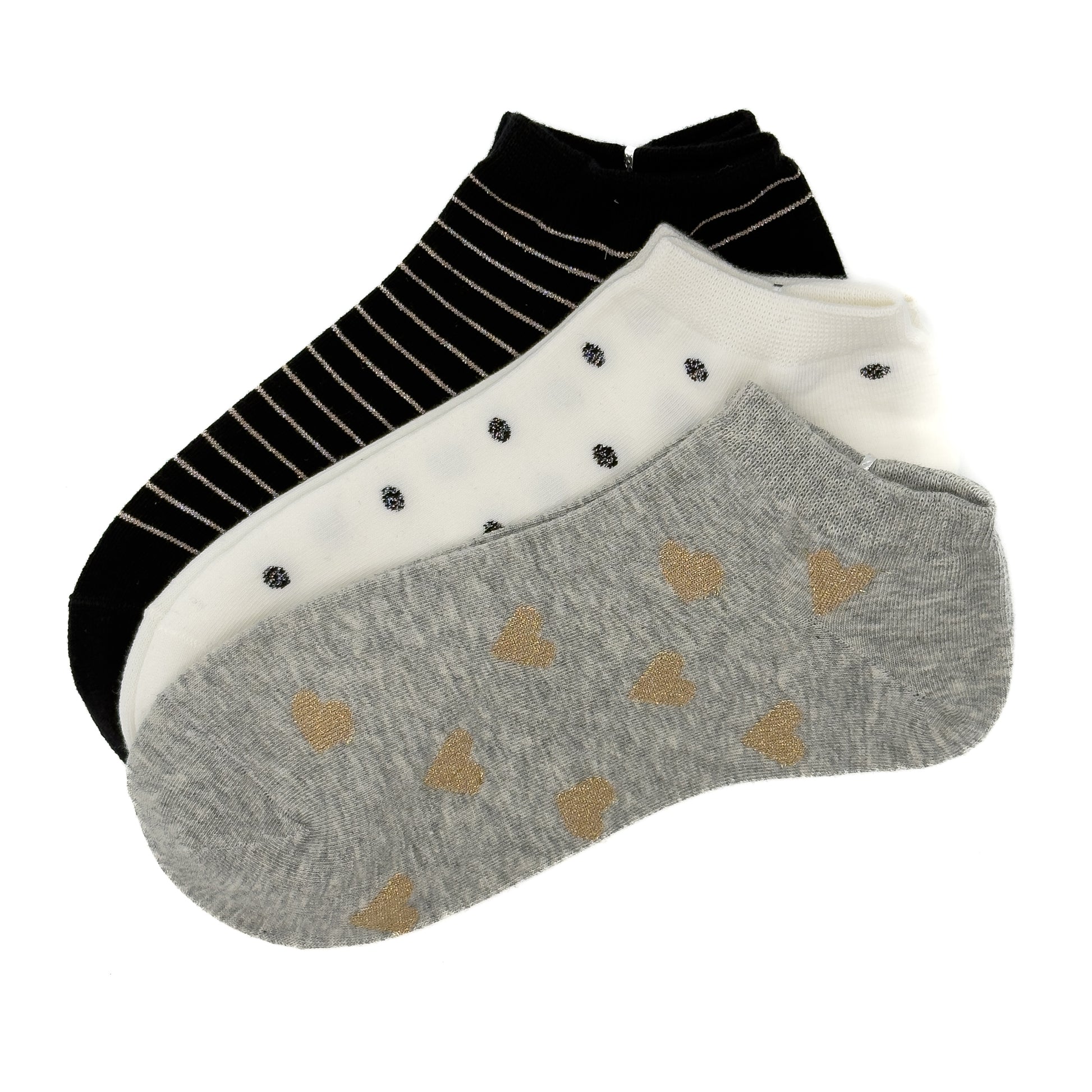 Paket 3 nogavick z vzorci srce/črtice/pikice❤️